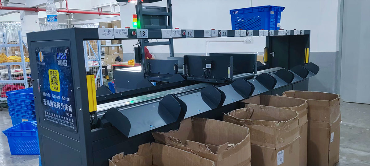 姜考跨境電商使用鴻順捷·速測通矩陣式分揀機(jī)場景